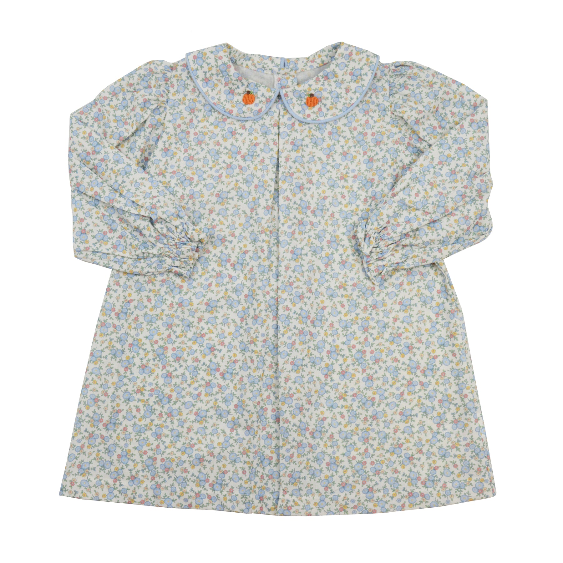 We are smitten with the floral dress with the cutest pumpkin detail around. Perfect to wear up until Thanksgiving Day.