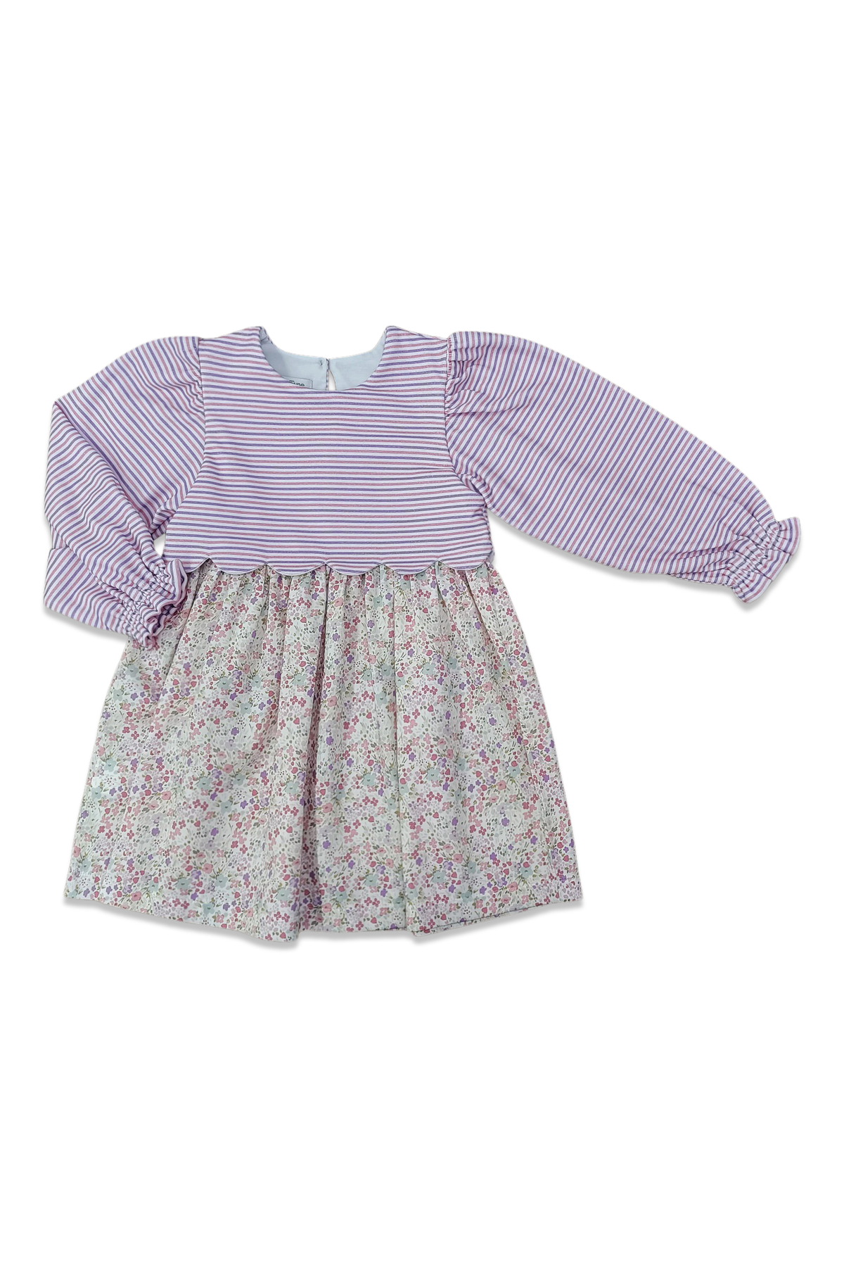 We are smitten with this silhouette - the scallop knit stripe and floral pairing.