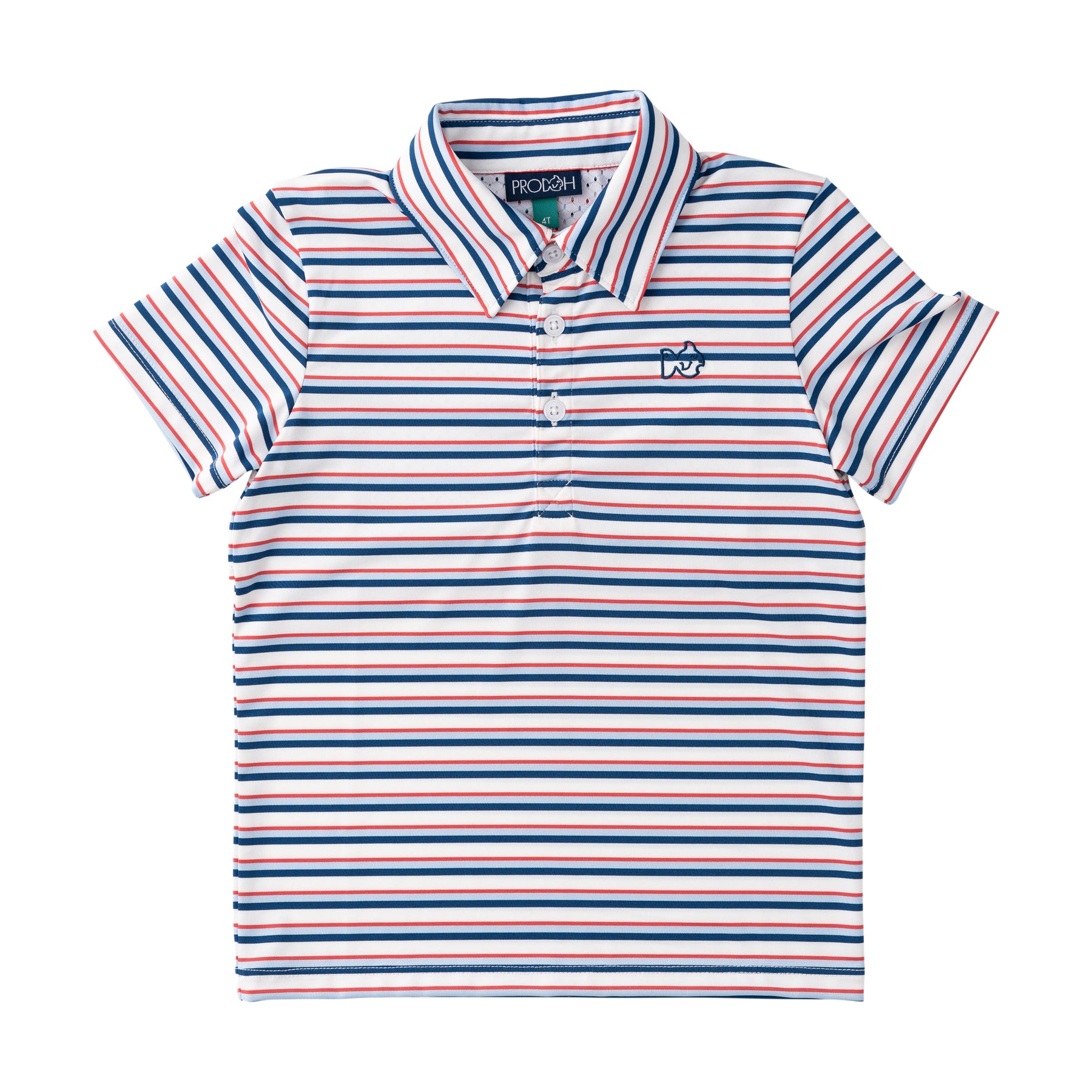 The perfect patriotic polo for all his summer celebrations. Made from a 90% polyester 10% spandex UPF 50+ blend, this quick-dry, moisture-wicking polo keeps kids cool, sun-safe, and ready to cruise from the golf course to the playground.